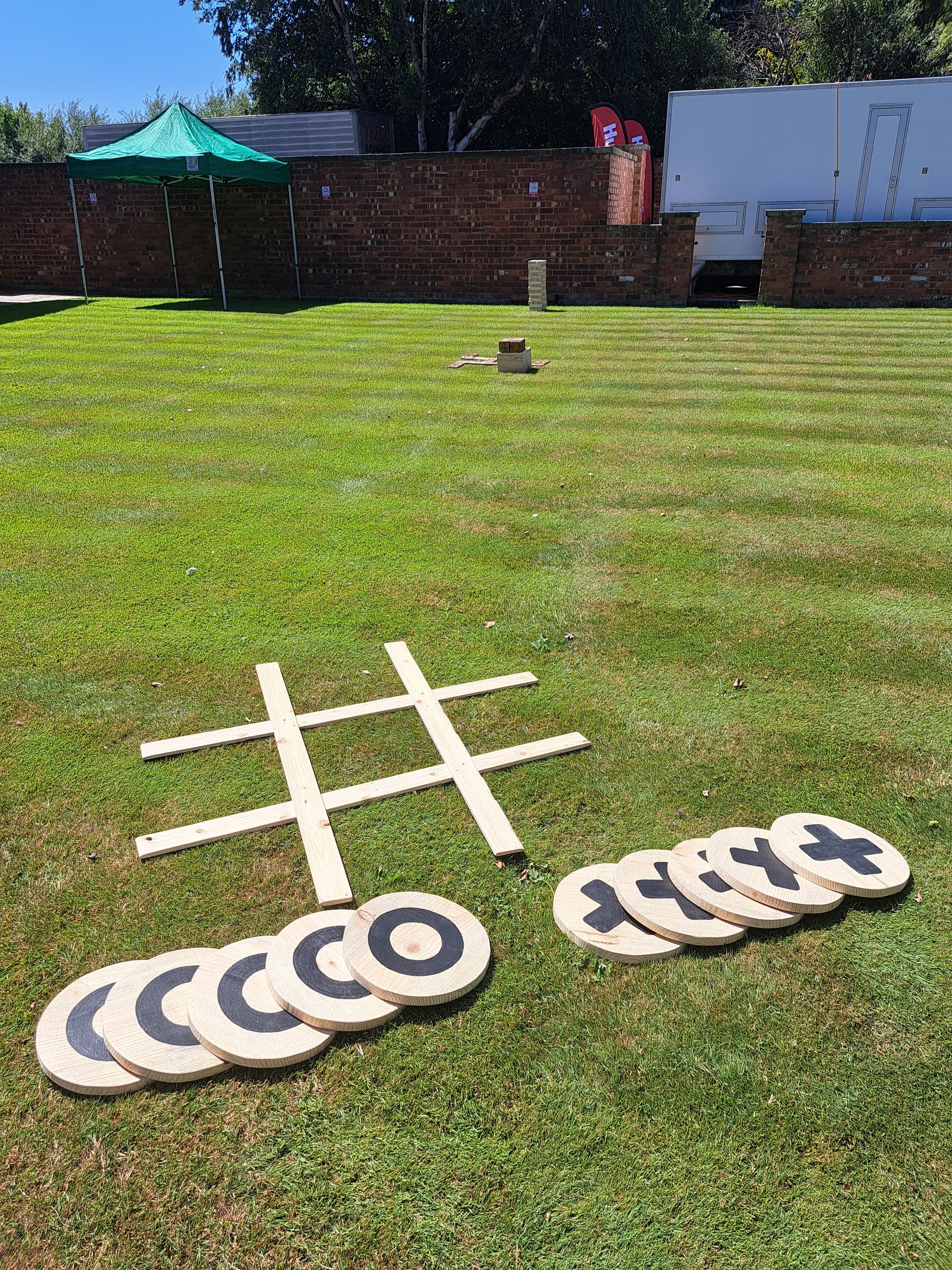 Get ready to play the biggest game of your life with our For Hire - Giant Tic Tac Toe! Made from real wood slices, this game will add a touch of rustic charm to any occasion. Whether you're playing with friends or family, it's sure to bring everyone together for some competitive fun (no splinters included)!