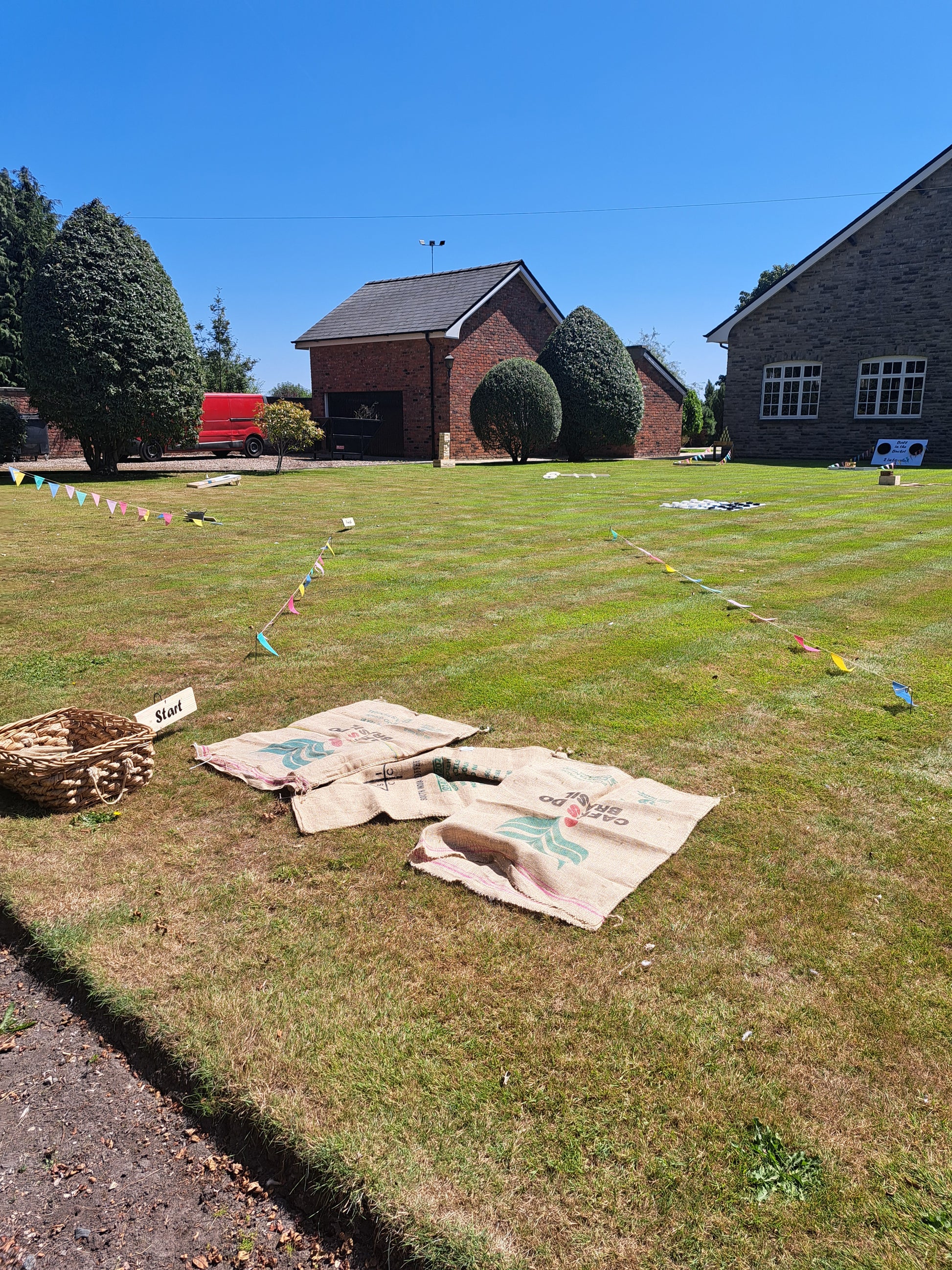 You will be supplied with five sturdy jute sacks (70cm x 100cm) and bunting to set out the race.